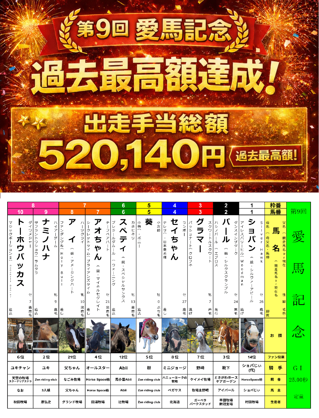 ・出走手当(ご支援)総額:520,140円【過去最高額✨】